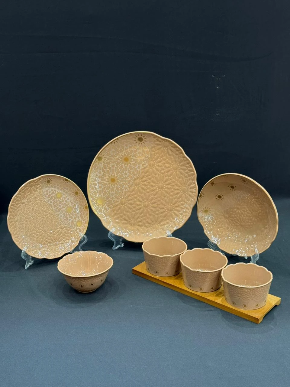 طقم شاى وجاتوه تايلاندى _كريمى_24 قطعه