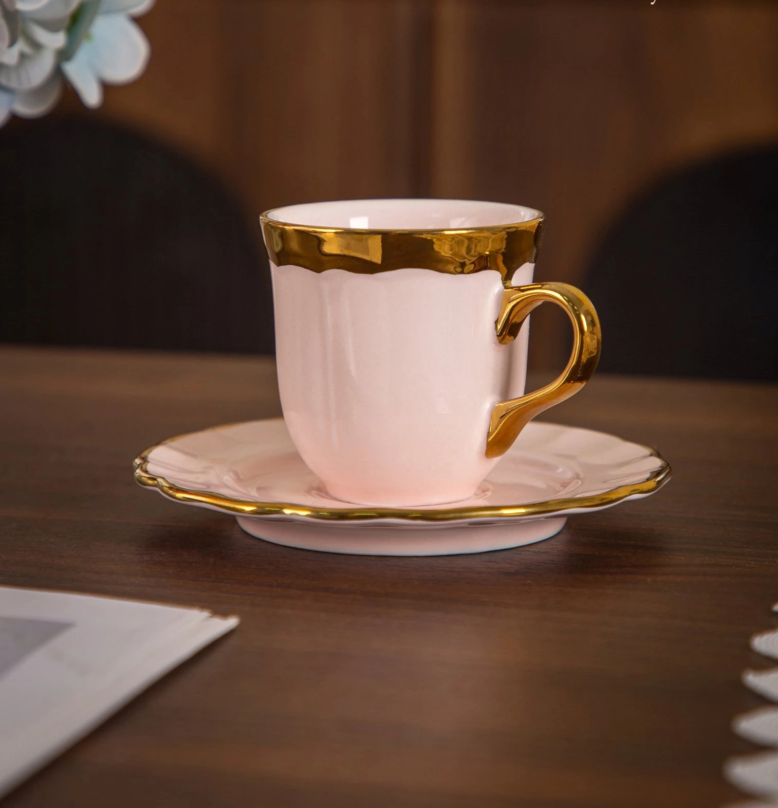 1. طقم القهوة بالحامل هو اختيار مثالي لكل من يبحث عن الأناقة والعملية في آن واحد. يتميز الطقم بتصميم راقٍ يجمع بين الهدوء والفخامة، مع حامل معدني ذهبي يُسهّل تنظيم الطقم ويمنحه مظهرًا جذّابًا يناسب جميع ديكورات المنزل.
