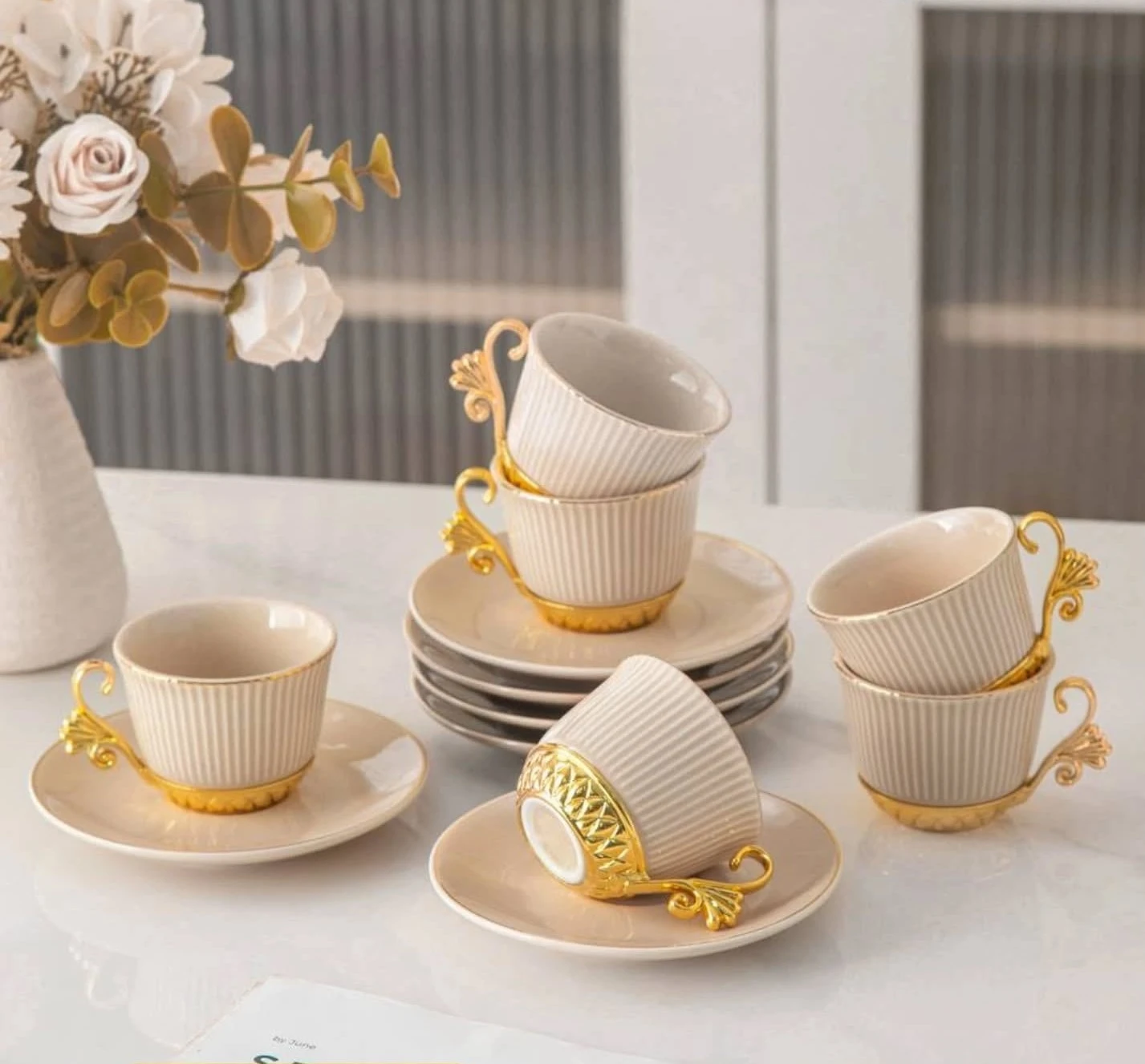 استمتع بتجربة قهوة مميزة مع طقم الفناجين المصنوع من البورسلين عالي الجودة. تصميمه الأنيق وخامته المتينة يخلوه الاختيار المثالي سواء للاستخدام اليومي أو للضيافة في المناسبات الخاصة.