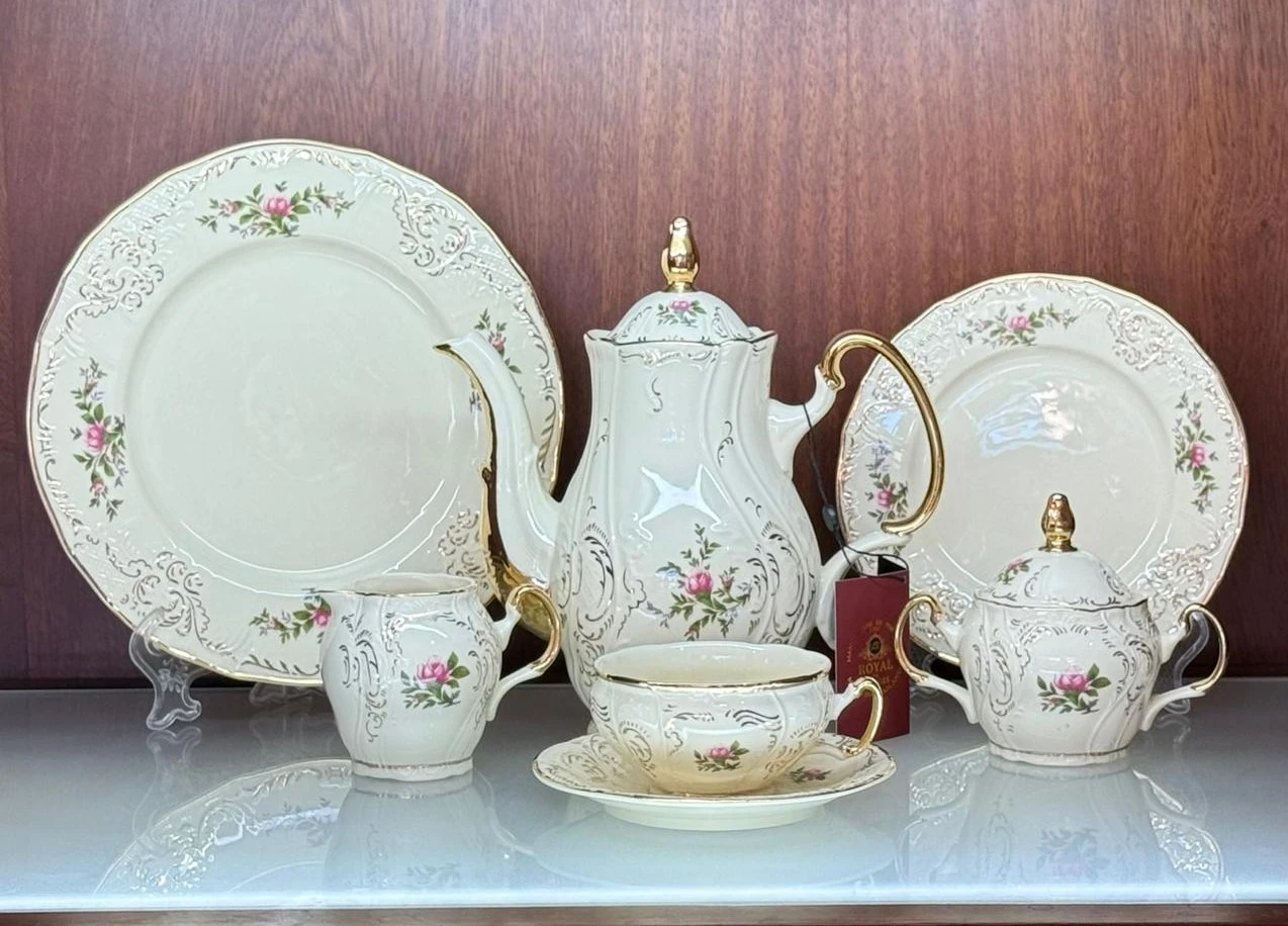 طقم شاى وجاتوه تايلاندى _كريمى_24 قطعه