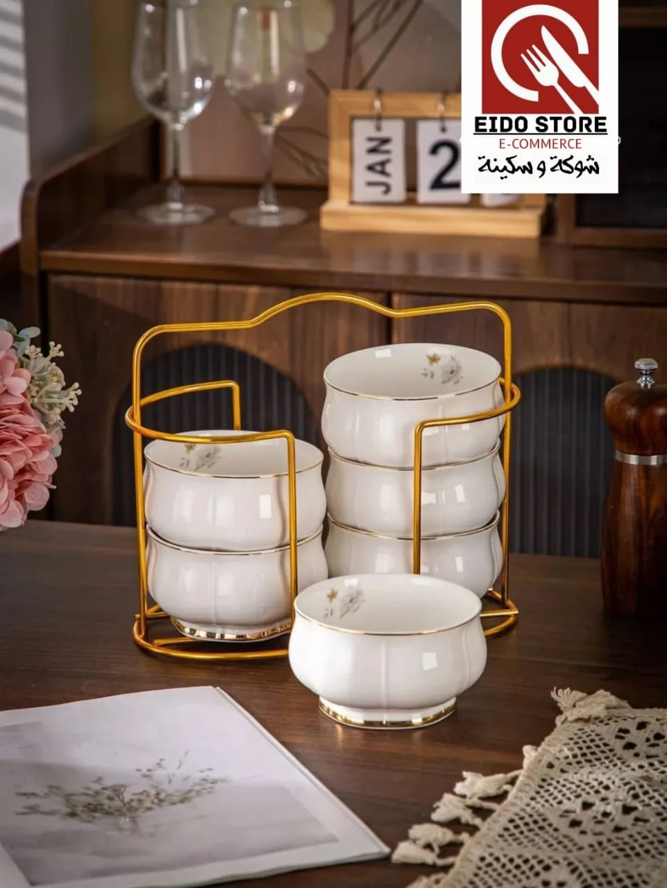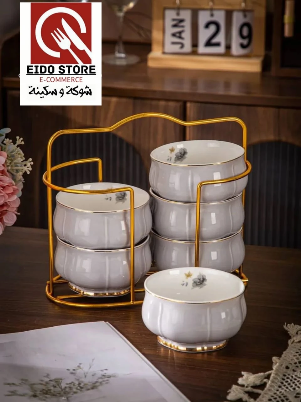 طقم شوربه علي حامل – بورسلين