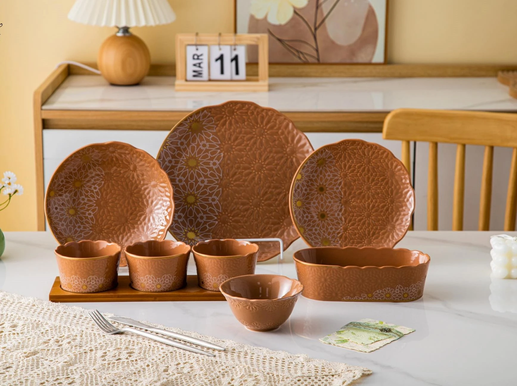 طقم عشاء 29 قطعه – حفر بارز