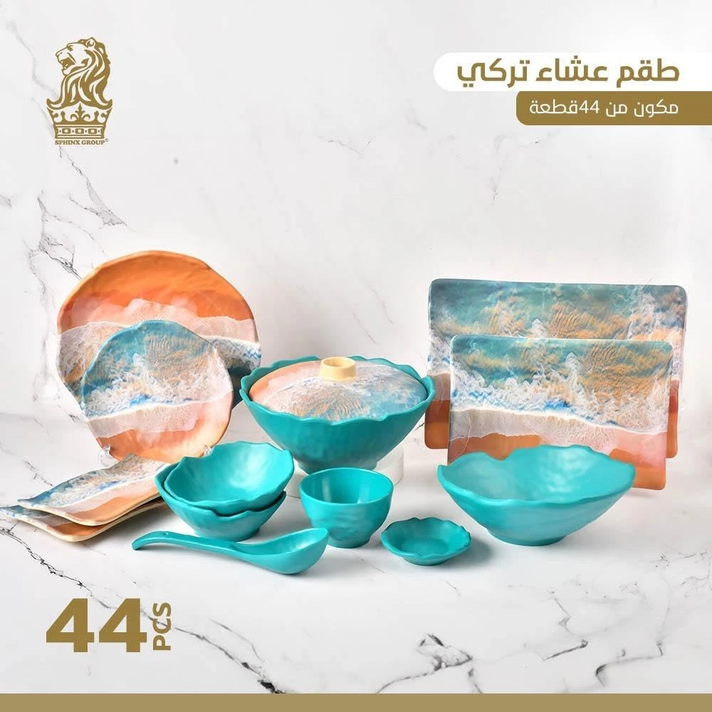 طقم عشاء من الميلامين مقاوم للكسر سفنكس جروب من سفنكس، من 44 قطعة