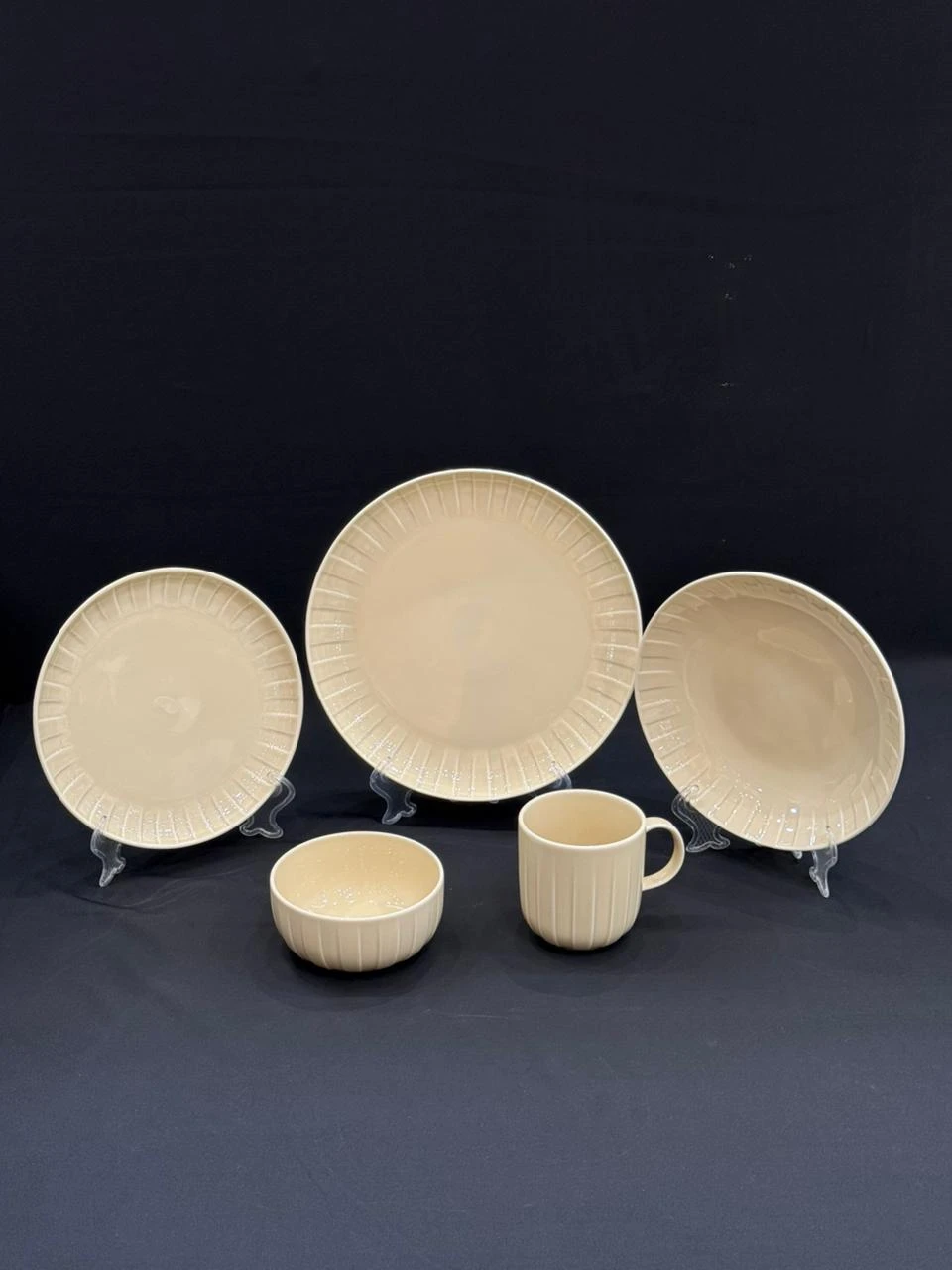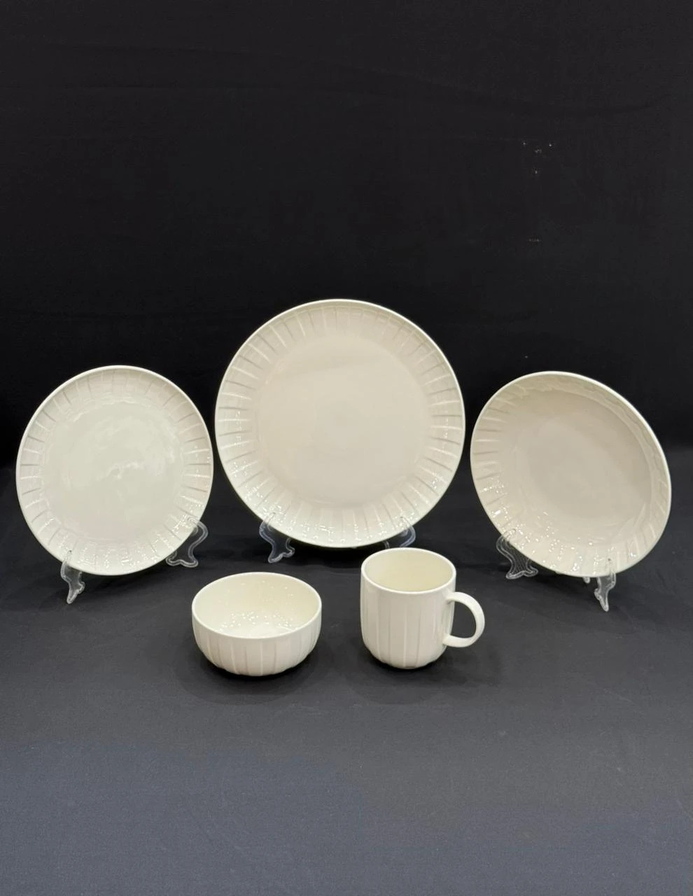 طقم عشاء تايلاندي بتصميمه الأنيق وتصميمه الراقي، مثالي لعشاق البساطة والفخامة. مصنوع من بورسلين عالي الجودة، آمن للاستخدام في الميكروويف وغسالة الأطباق، ما يجعله خيار عملي وأنيق لسفرتك اليومية أو العزومات.