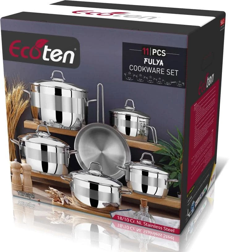 طقم حلل استانلس استيل إيكوتن – Ecoten التركي 🇹🇷، بتكوين جديد مكون من 11 قطعة، يجمع بين القوة، المتانة، والأناقة.