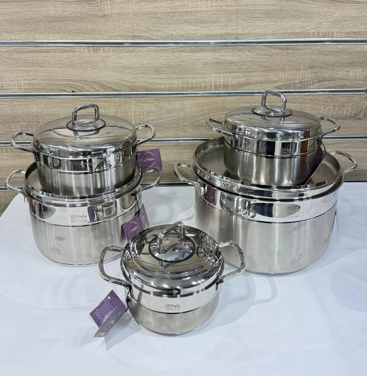 مصنوع من الأستانلس 18/ 10 مقاسات مختلفه للحلل تناسب استخدامك موديل مميز للطقم