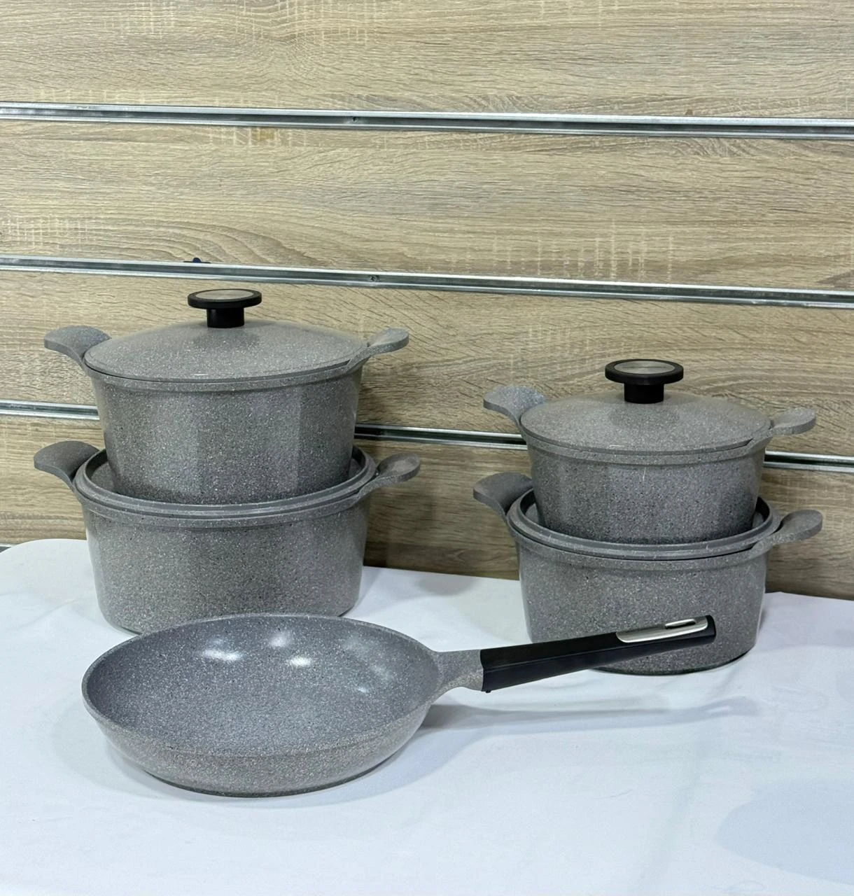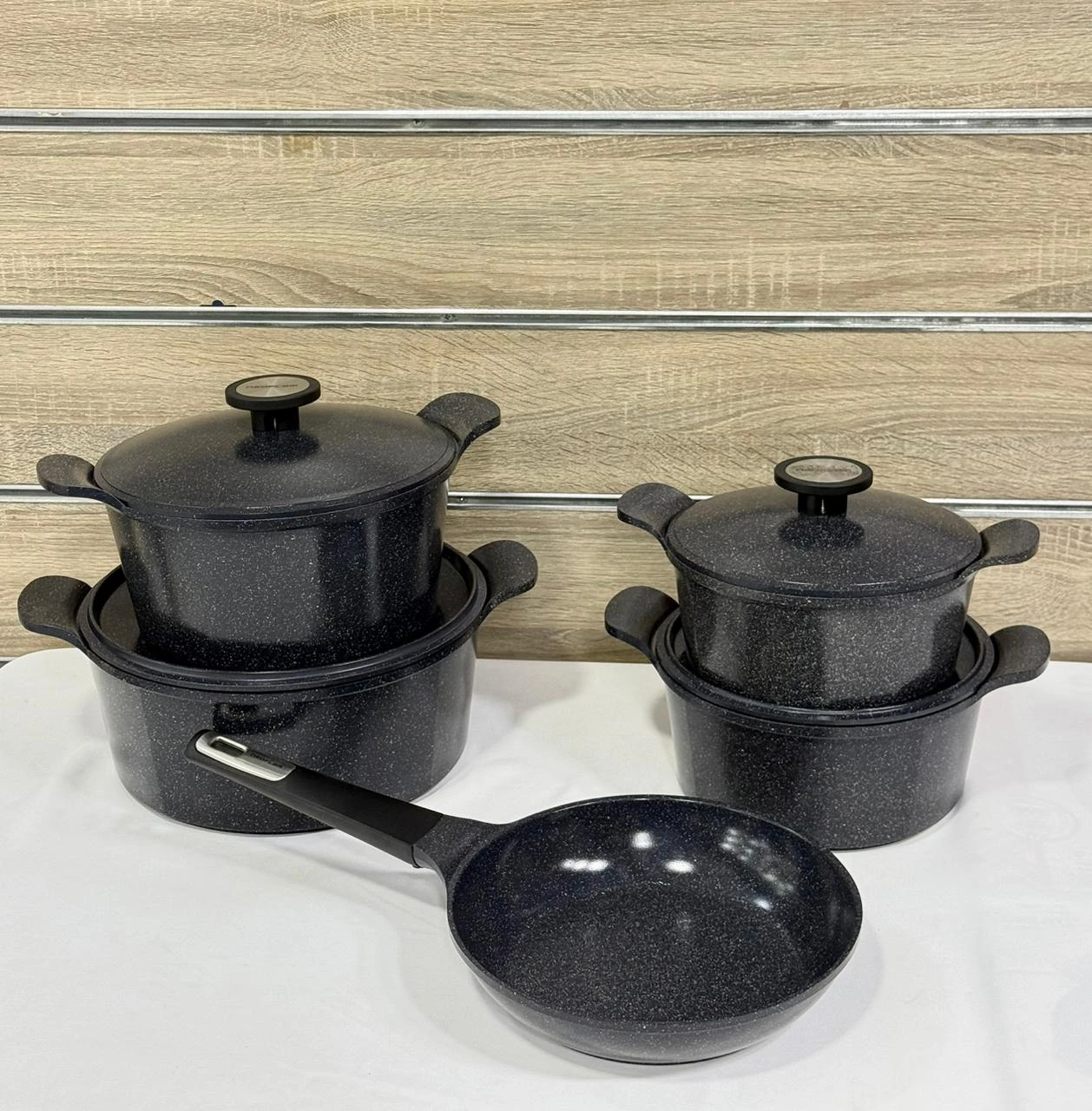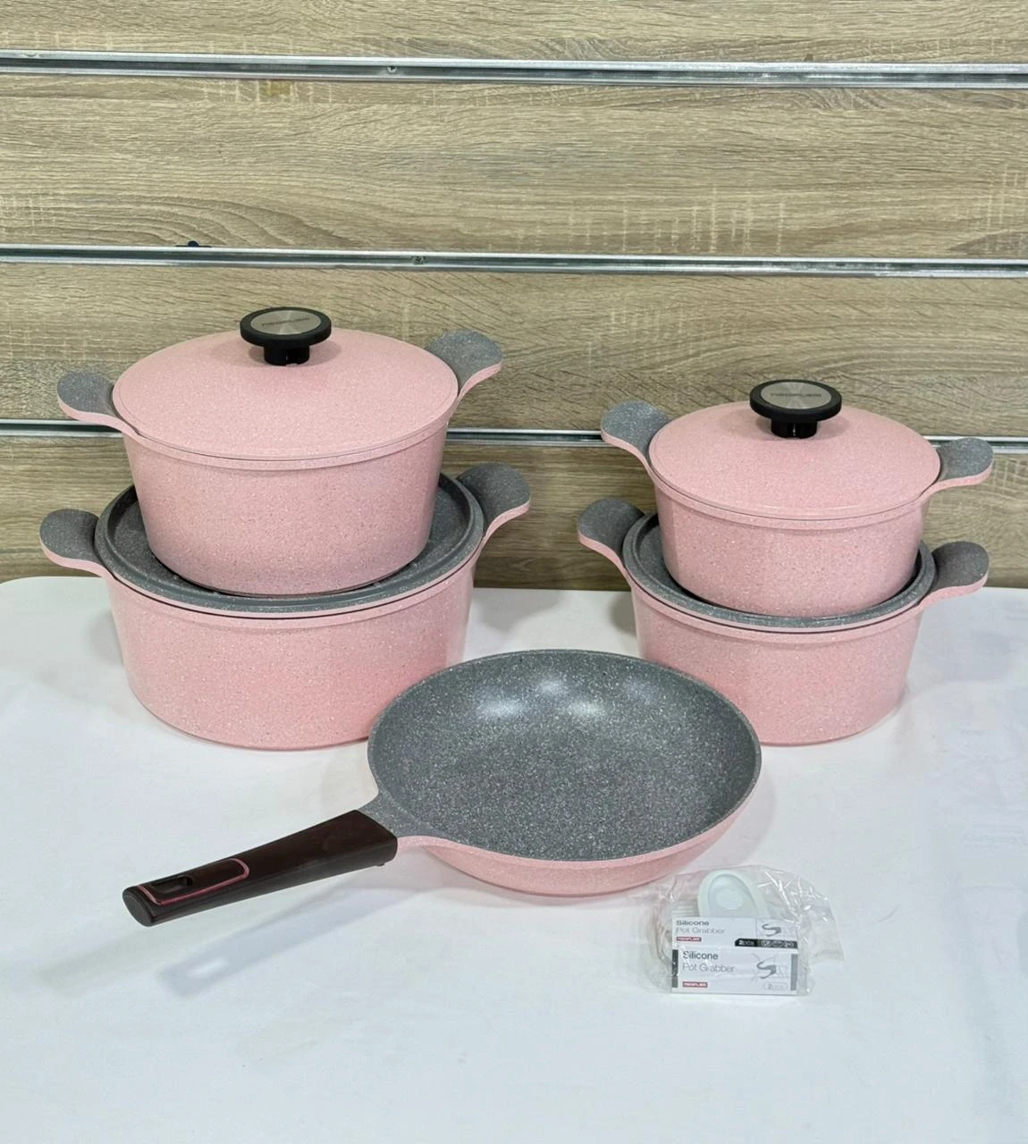 طقم مميز بلون روز أنيق وخامة جرانيت صحية مقاومة للالتصاق، يمنحك طهيًا متوازنًا وتنظيفًا سهلًا. تصميم عملي وعصري يناسب الاستخدام اليومي.