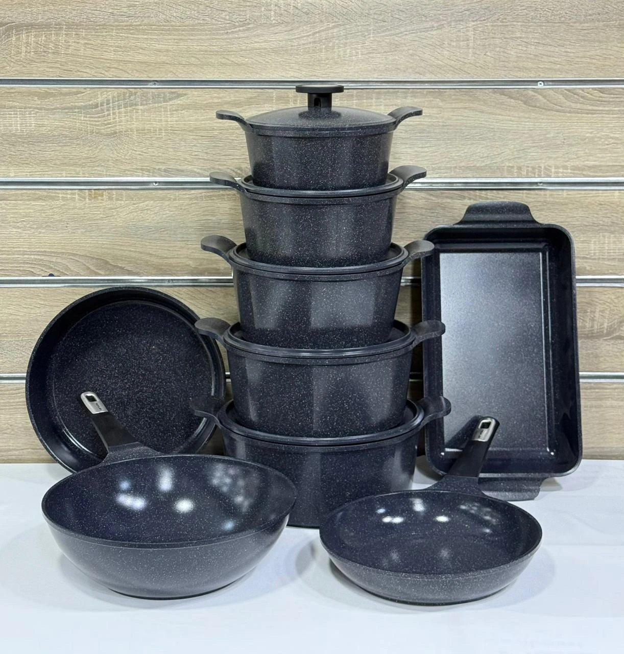 طقم حلل جرانيت مضلع 14 قطعة –