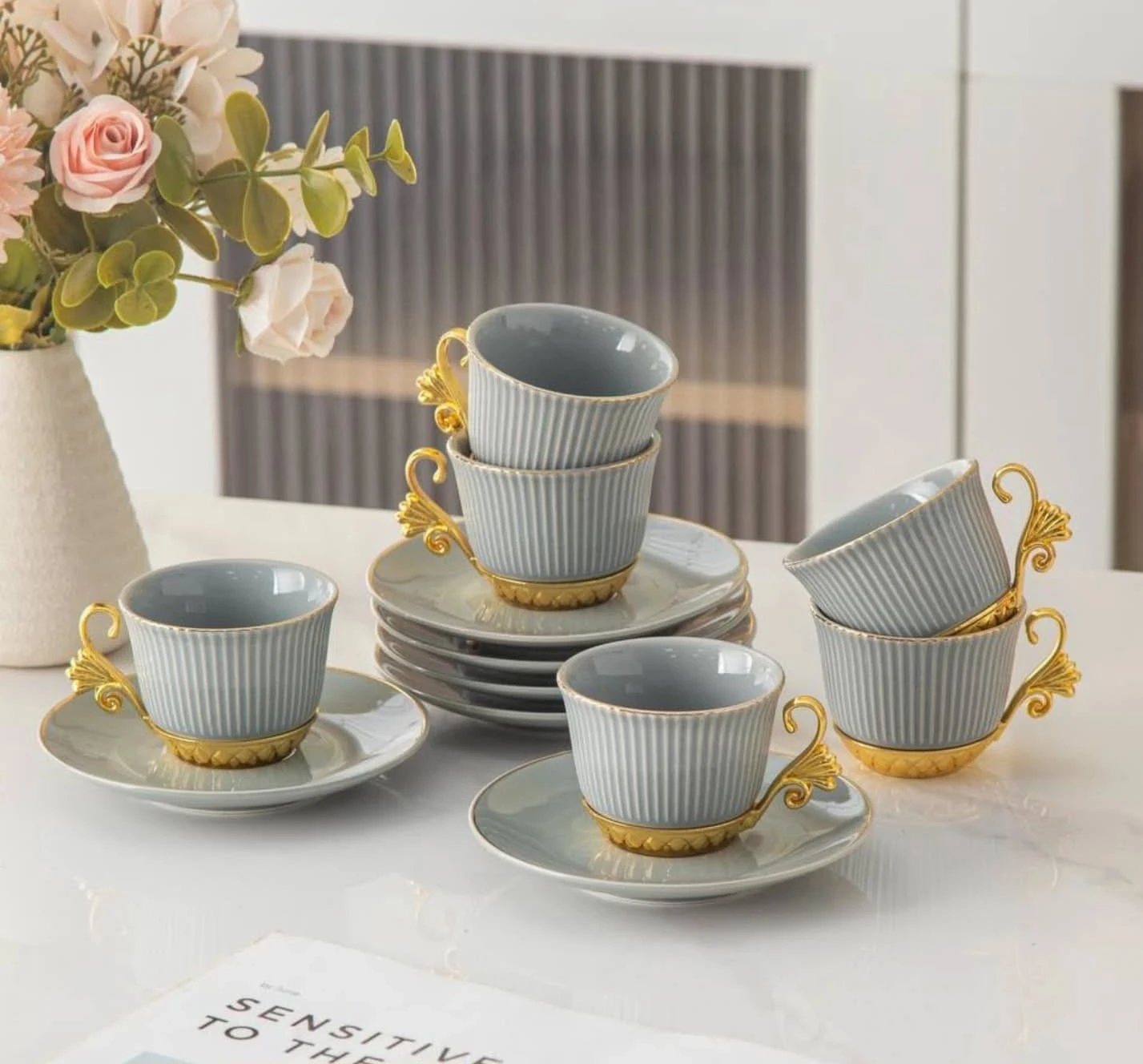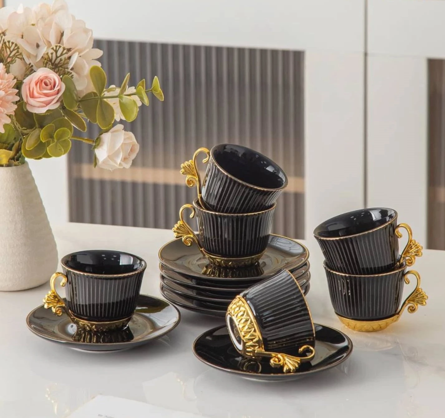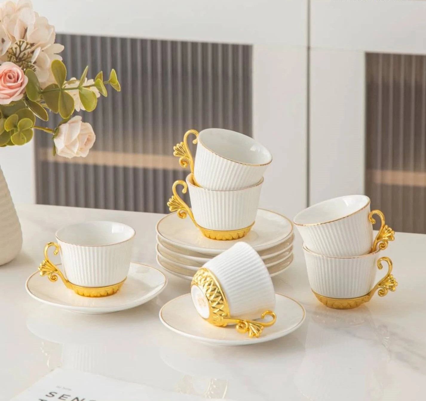 استمتع بتجربة قهوة مميزة مع طقم الفناجين المصنوع من البورسلين عالي الجودة. تصميمه الأنيق وخامته المتينة يخلوه الاختيار المثالي سواء للاستخدام اليومي أو للضيافة في المناسبات الخاصة.