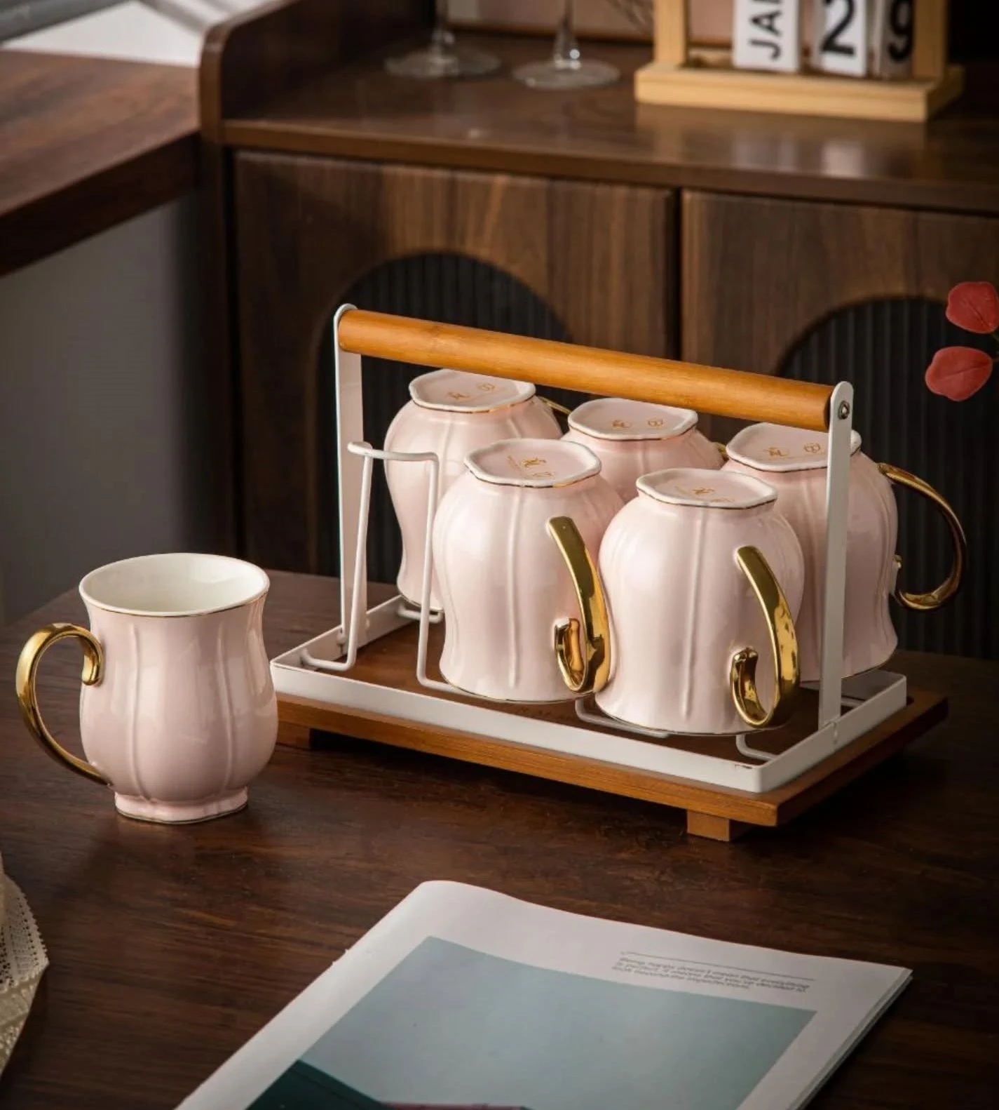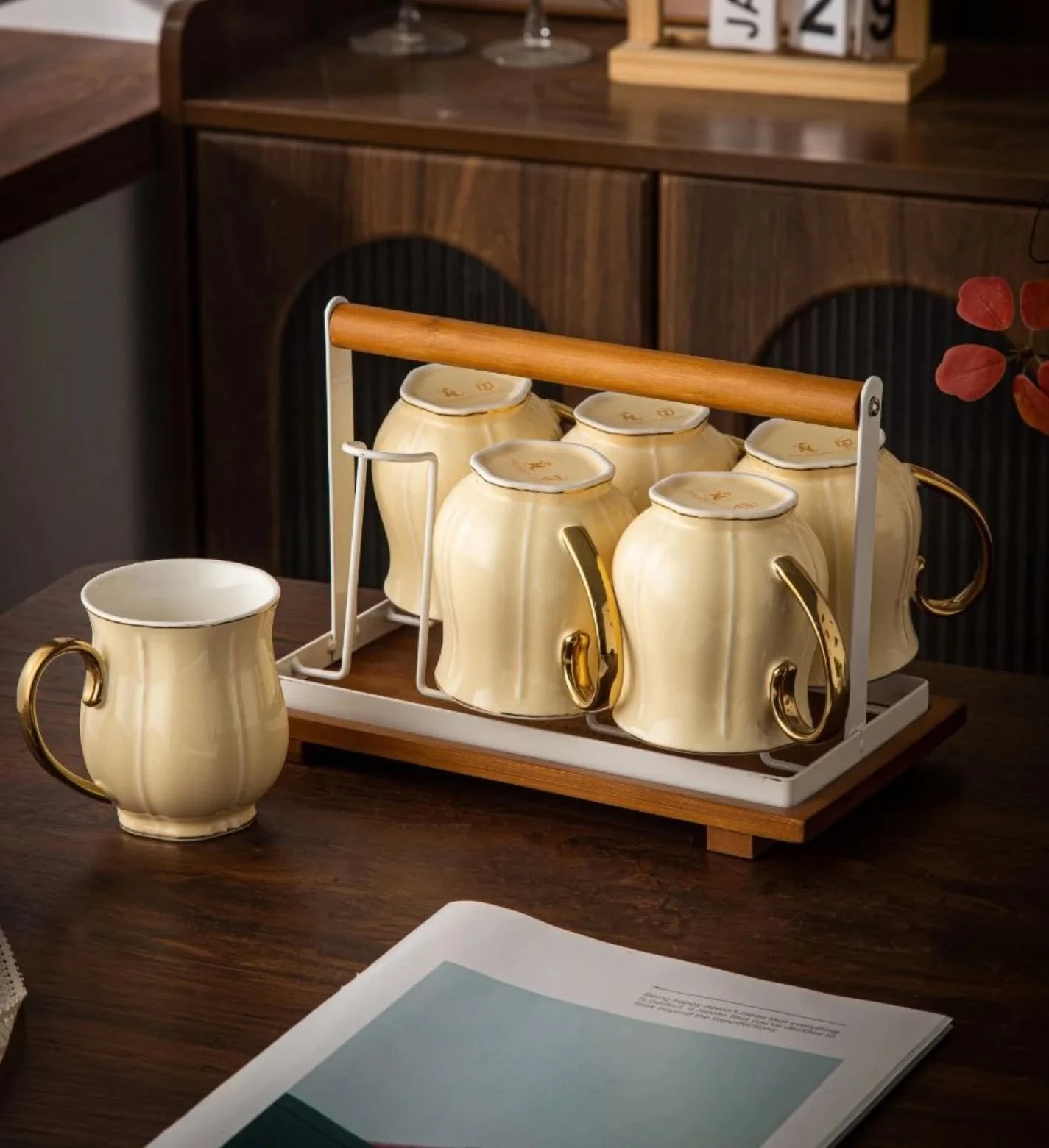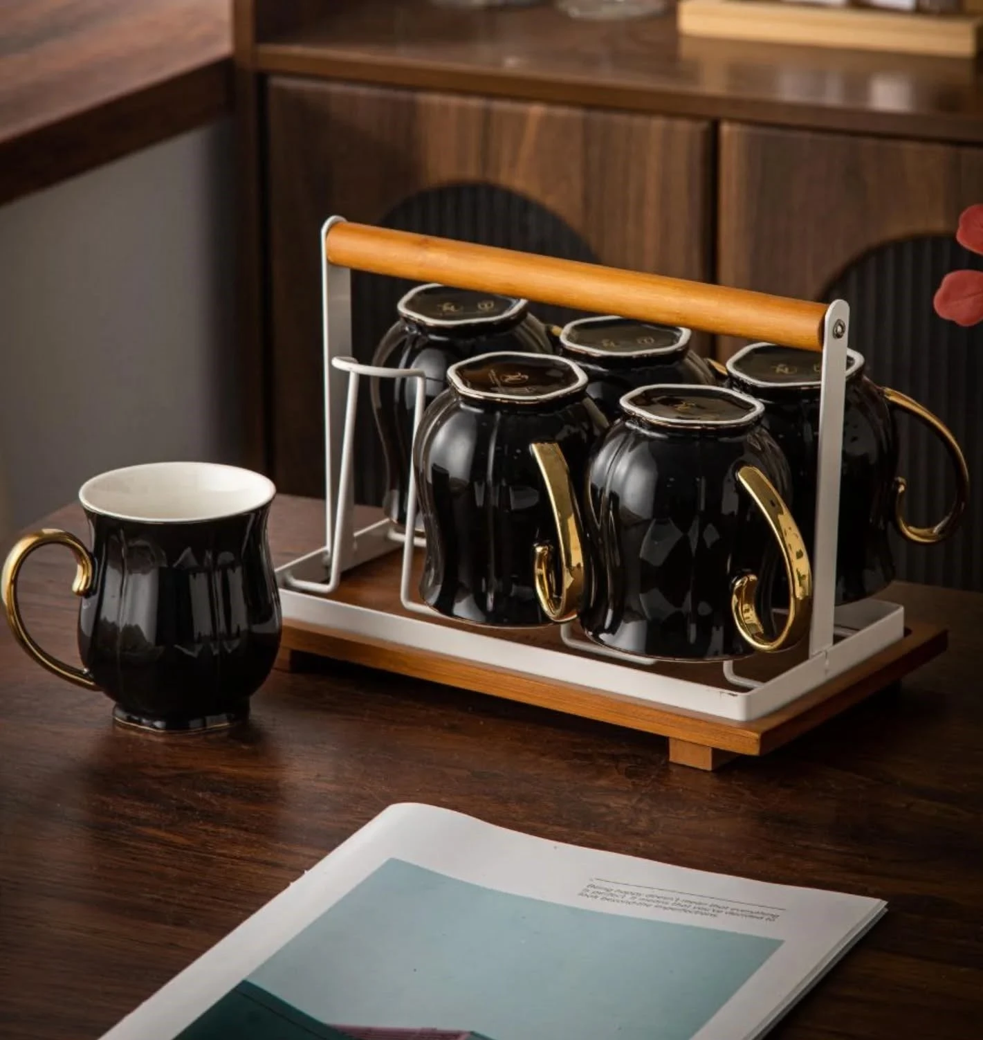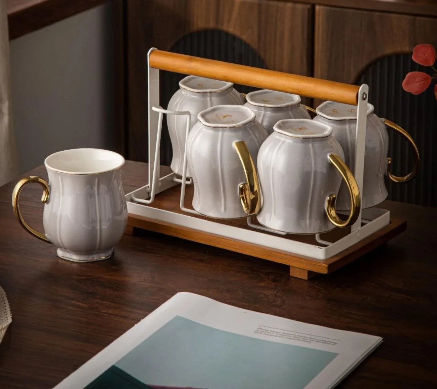 طقم قهوة على حامل بالتمرية