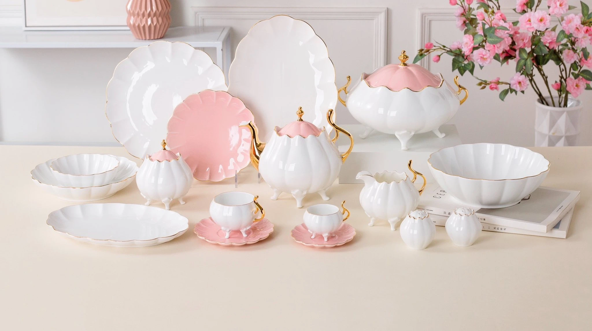 طقم صيني60قطعه مختوم صيني تصميم منتهي الشياكه كوالتي يليق بعملاء شوكه و سكينه