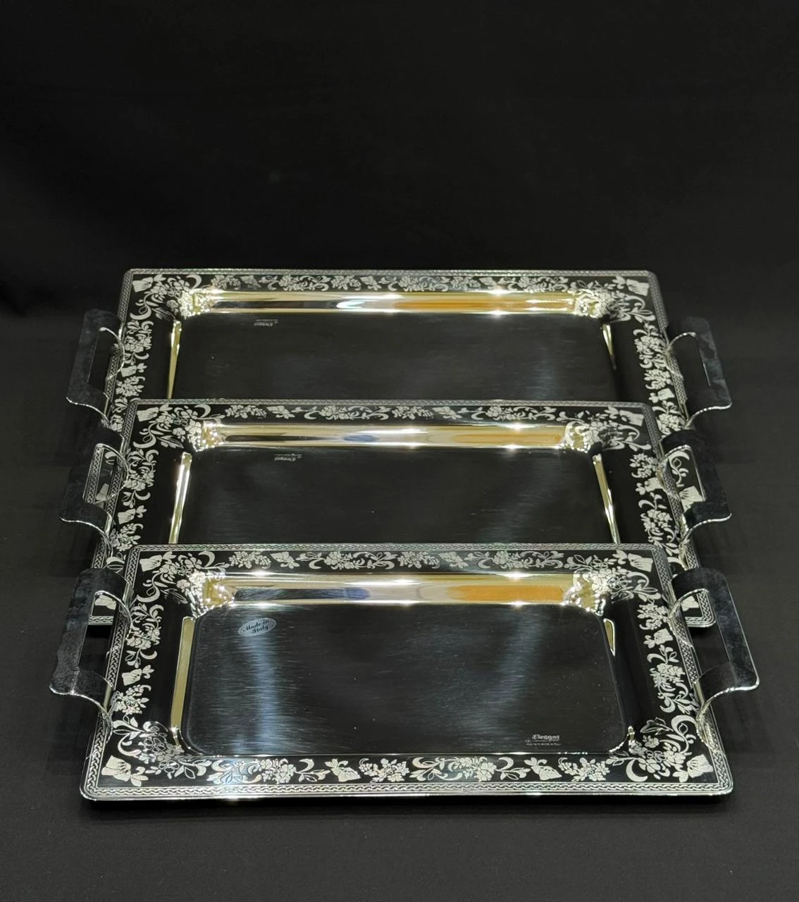 2. تميزي بأناقة التقديم مع طقم الصواني الايطالى المصنوع من استانلس ستيل 10/18 عالي الجودة. تصميم مستطيل عصري ولمسة نهائية لامعة تضيف لمسة فخامة لأي مناسبة.